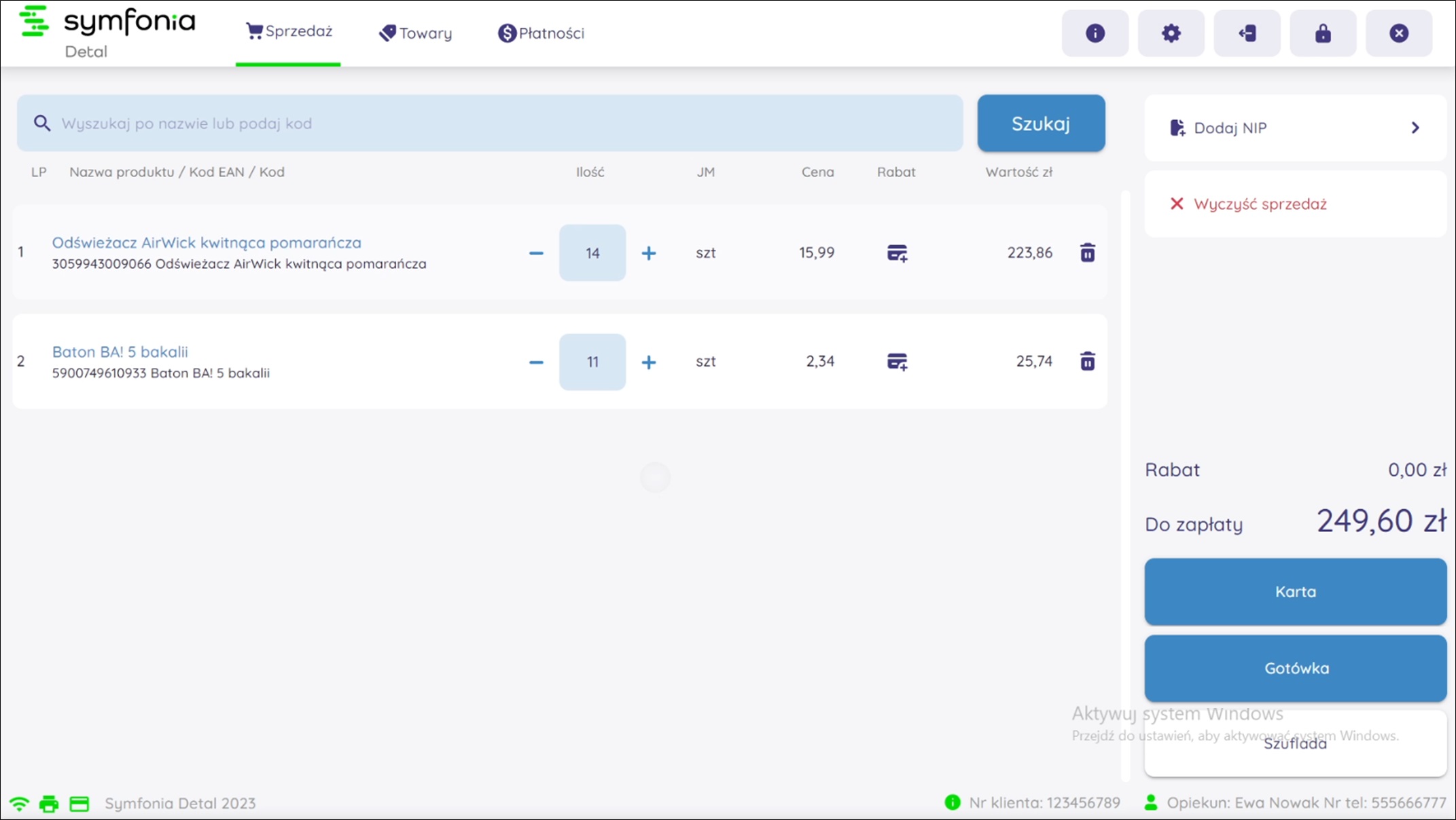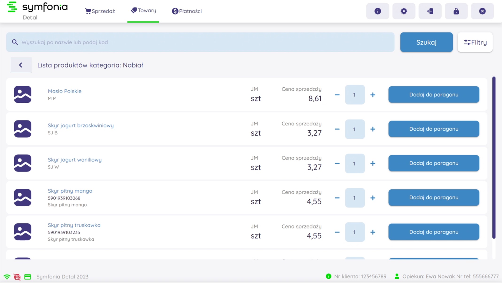 Symfonia detal to moduł dodatkowy do Symfonia Handel ERP umożliwiający prowadzenie sprzedaży detalicznej na urządzeniach typu POS na Windows IoT. Aplikacja bezpośrednio jest podłączona z drukarką fiskalną Posnet Thermal XL2 2" online oraz Terminalem płatniczym dostarczonym przez Polskie e-Płatności.